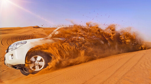 这是个一半是海水一半是沙漠的地方,开着越野车,刺激的冲沙,心跳加速,血脉膨胀。令人惊奇的是开着开着就能看到一望无垠的蓝色大海,开一瓶香槟在沙滩上躺一下午,又是非常的惬意,这就是多哈,当然来了沙漠了还能体验骑骆驼哦。