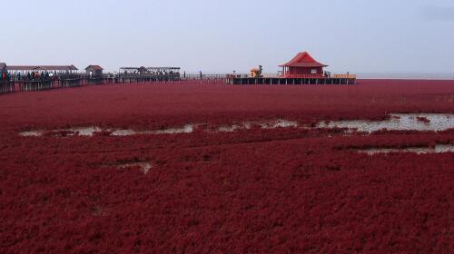辽河三角洲拥有世界面积*保存*完好的芦苇荡。*特别的是那举世罕见的红海滩,鲜艳的红色碱蓬草覆盖了整片河水,令人叹为观止。站在桥上,欣赏远处的景色,中央上假乌龟和假螃蟹的模型甚是可爱,海鸥和丹顶鹤仿佛是这里的熟客,时不时的停下来栖息觅食。柔美绚丽的三角洲*是个一家人出游踏青的好地方。查看目的地攻略