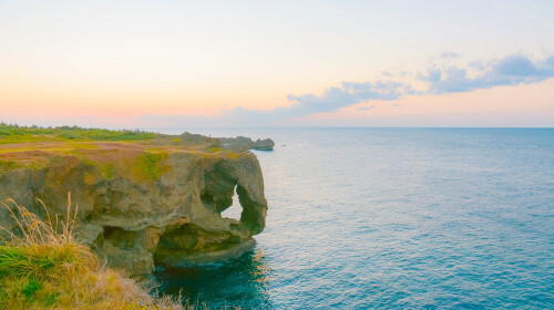 位于是海边的一座断崖之上,一片广阔无垠的草坪,看海天一色的美景,看悬崖之下的珊瑚礁,美丽的万座毛,想在这里吹吹海风。