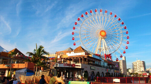 美国村有着浓浓的美式风情,美食都是汉堡薯条炸鸡,很多情侣爱去这里,因为浪漫的摩天轮,乘坐一圈大约15分钟,可以俯瞰美国村全貌,更可以看到落日下的大海。