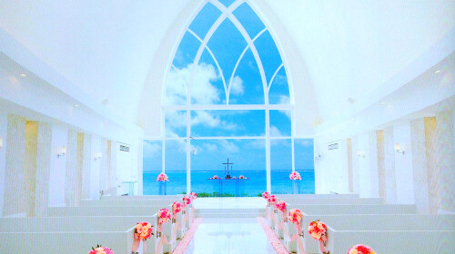 教堂矗立在冲绳西海岸,以白色贝壳为理念设计,蓝天碧海阳光环绕的玻璃教堂,是著名的结婚圣地,很多人慕名而来。