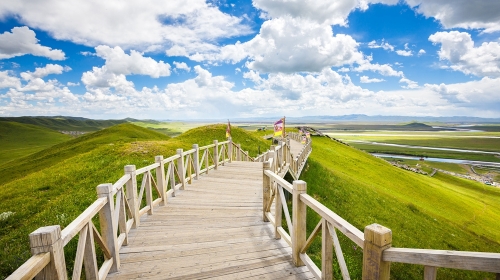 锡林郭勒的草原类型多而完整,有草甸草原、沙地草原、半荒漠草原等。 每到夏天的时候,乌珠穆草甸草原就会化身绿色的海洋,不过,除了养眼的绿,你还会看到点缀其中的芍药以及山丹花,在蓝天白云的衬托下,组成了一副天然的水彩画。 玩法:在这里可以骑自行车、摩托车或者驾四轮驱动车,骑马查看目的地攻略