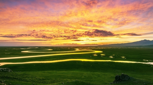 看过海上日出,观过山顶日出,草原上的日出美景当然也不要错过。在草原上看日出,不需要辛苦地爬上山顶,也不需要一大早摸索着跑去海边,打开蒙古包的大门就可以。因为在茫茫的草原之上没有任何的遮挡物,在这里,你的视线不会受到任何的干扰,可以悠悠地看着一片绿色之中的红色朝阳慢慢升起,迎接美好一天的到来。