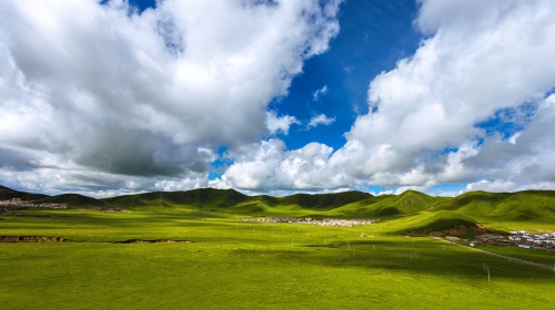 若尔盖大草原地处四川省阿坝藏族自治州,在青藏高原的东部,海拔比较高,在3300至3600米之间,有“川西北高原的绿洲”之称,也是我国三大湿地之一。来这里玩的话,要稍微注意一下高原反应。夏天来若尔盖,天高气爽、绿草茵茵,能见度很高。晚上可以选择住在黄河九曲*湾景区,有帐篷,价格不贵。查看目的地攻略