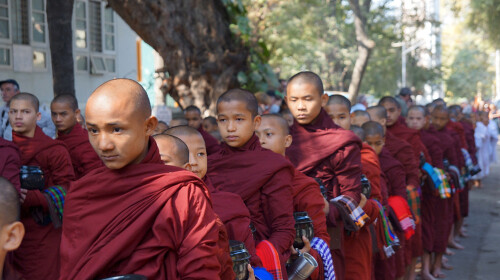 一堆游客看一对和尚吃饭,全场鸦雀无声,十分庄重,这道亮丽的风景线就是著名的千人僧院——马哈伽纳扬僧院。马哈伽纳扬僧院位于乌本桥头,是缅甸*的僧院之一,这里有着僧人近2000人,每天上午十点,各国的游客云集于此,目睹千名和尚一同食用午餐的画面。缅甸的僧侣一天只吃3餐,一餐在凌晨4点钟,一餐就在上午十点,过午则不食。当然,你也可以与僧侣进行沟通。Ps:游览时要注意,拍摄是要真的征得同意。查看目的地攻略
