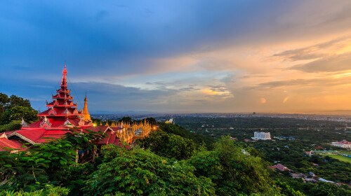 曼德勒山位于缅甸中部,案的乐视区北部,虽然只有230米,但却是整个曼德勒是*的地方,从山上眺望,整个曼德勒全城和伊洛瓦底江景色尽收眼底,是观看日落的必去胜地。曼德勒山是一座佛教名山,山上共有231座大佛塔和寺庙,1000多座小寺庙。从山脚的东南西三个方向都有石阶通往山顶,一路上沿着山坡拾级而上,有一千七百二十九个台阶,沿途有八大佛寺,半山腰的庙里据说还有佛陀的3块遗骨。查看目的地攻略