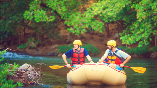 流溪河峡谷漂流刺激程度相对要缓和一些,因为它是设在流溪河森林公园的一段溪涧之中。坐上一个双人漂流筏,然后自己掌着舵,在缓水中哼着小歌,伴着两岸的青山绿树悠悠地随水逐流。不过,怎么说人家也叫漂流,不会全程都是缓水,那多没意思啊,它会趁你沉浸于蓝天绿水之中不可自拔时,突然来一段急流险滩。到时候不要被溪水冲撞吓得扔掉小桨哦。