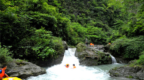 "大丰门漂流真真是国内一等一的漂流之霸,因为它占了太多*的名头。6359米的*长漂程,391米的*落差,278道*多叠水,刺激到要尖叫了。在你穿石绕壁、搏浪飞舟的同时还能欣赏到两岸的泉瀑飞泻,就看你还有没有多余的精力去赏景了。全身湿透那是必须的,但就算不小心喝到水也木有关系,因为这里的水都是山泉汇集而成,一级饮用水标准哦。