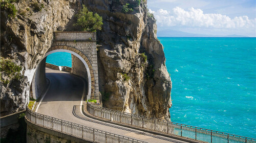 【Amalfi Coast Drive】 特色:海岸传奇车道 意大利的阿马尔菲海岸本身就是一处漂亮的风景带,是被很多人认定是一生中一定要去一次的地方,而沿着这条海岸线而建的车道必然也是自驾游*不能错过的线路。阿马尔菲车道*棒的不仅在于它蓝天碧海的自然景观,更在于它所拥有的*的中世纪城市风情。因为沿途排列着的都是色彩缤纷的中世纪古镇,点缀其中的教堂、城堡都会给你时空错乱感。查看目的地攻略
