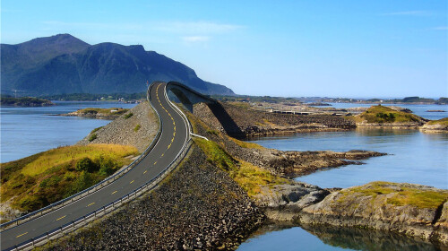 【The Atlantic road】 特色:挪威的世纪性建筑 它是一条公路,却足够妖娆,弯弯曲曲地用自己的身形划出了一道美丽的弧线,串起了一座座小岛。整条公路由8座小桥组成,不过说是小桥似乎又委屈了它,它更是一座座艺术建筑。因为设计的精巧,有时会给人一种心慌慌的紧张感,快到桥顶时,因看不到前方的路,会觉得自己下一刻一定会掉进海里。但等你开过桥顶,却*会有一种豁然开朗的感觉。查看目的地攻略