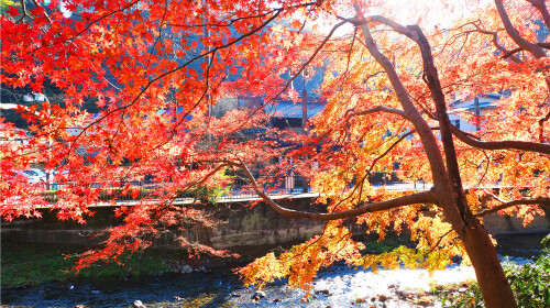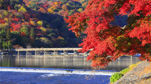 日本赏枫看京都,京都赏枫看岚山,岚山位于京都西郊,旧时是日本王公贵族赏枫看景、泛舟戏水的地方。以横跨桂川的54米渡月桥为中心,岚山脚下大堰川潺潺流过,每当秋日来临两岸山上松柏、枫叶层林竟然,层次跌宕,五彩斑斓。 赏枫*时间:11月中旬-12月上旬 交通:在阪急电车“岚山站”下车5分钟、在京福岚山本线“岚山站”下车1分钟既到查看目的地攻略