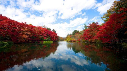 云场池是位于长野东南部地区的湖泊,当地人把这里当做深林浴场,蓝色的池水清澈透明倒映着两岸的青山、繁茂的树木,斑斓的红叶,像一幅秋日的画作,日式的情调尽显,漫步人行步道仿佛置身于仙境之中。 建议交通:从JR長野新干线轻井泽站步行約15分 建议时期:10月~11月上旬查看目的地攻略