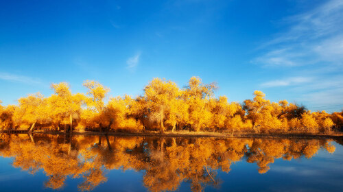 还记《英雄》里那一段红色衣裙金色落叶中殊死搏斗,是不是美得炫目。取景地正是内蒙古额济纳的胡杨林。每年9.10左右开始叶子开始变黄,但胡杨林*的时候也不过十几天,都说,三千年的等待只为看一眼胡杨林,徒步从2道桥走到8道桥,日光落在金黄的叶子上,璀璨金黄,已经无法用言语描述这样的金色童话世界。