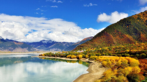 《三生三世十里桃花》火了西藏林芝的十里桃花里,可秋天才是林芝*的时候。林芝的天空总是那么湛蓝,白云朵朵下,雪山皑皑,此时的森林色彩逐渐开始变得斑斓,黄、红、紫色层林尽染,金黄色的青稞地,尤为的亮眼,山间的湖水显得更加碧绿,零星散落的村庄袅袅升烟,牦牛、骏马漫步青黄相接的草原上,宛如一幅秋日油画。查看目的地攻略