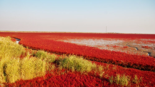 10月去盘锦,看*的红海滩,吃*肥的中华绒螯蟹,幸福就像蟹膏一样,满满当当。辽宁红海滩一望无际,鲜艳的红色碱蓬草覆盖了整片河水,再加上碧波浩淼的芦苇荡和一望无际的滩涂,犹如一块红色的云毯扑向海天之间……事实上红海滩由一颗颗碱蓬草织就而成的,每到秋季,碱蓬草的叶子就会变得火红,远远望去,颜色艳丽,此时还能看到鸟儿群起群落的景象。查看目的地攻略