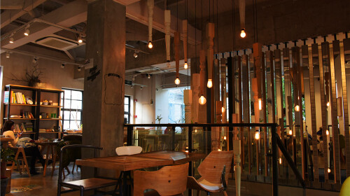 懒鱼时光馆隐匿在磁器口一个孤独的山头上,找起来有点费劲。但是走到之后,很轻易就能发现它。跨入小店,满眼的小清新,是童话般的存在,每一处都透着精致。这里有书、有咖啡、有小吃、简餐,更有各种精巧可爱的手工制品、花花草草和植物微景观。店里每个月会有一个全然不同的主题,根据主题店内售卖的东西也会不一样,很有趣的说。