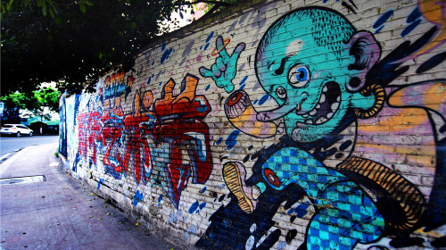 涂鸦街位于重庆九龙坡区黄桷坪正街,街道不长,从头逛到尾就到四川美术学院了。街边的房屋略显陈旧,在斑斓涂鸦的装点之下生色不少。远看近看、正看反看会有不一样的感觉,适合凹造型的时候当个背景墙什么的。很多公交车经停这里,在黄桷坪站下车就好。涂鸦街可以连同着四川美院一起游览,校园里很有艺术范,有各种雕塑、涂鸦和特别的建筑,花上2、3个小时接受艺术的熏陶也是棒棒哒。查看目的地攻略