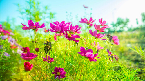 秋天除了落叶和桂花,以及金黄色,还有遍地的红色格桑花和明艳的大波斯菊。从市区驱车一小时就可以到达孔元村欣赏这一美景,成片成片的格桑花肆意开在山间,放眼望去,层层叠叠的绚丽颜色,五彩缤纷的波斯菊开在几十亩花田之中,热情奔放;谁说自古秋天多寂寥,我言秋日胜春朝可能就是唯一的感触吧!