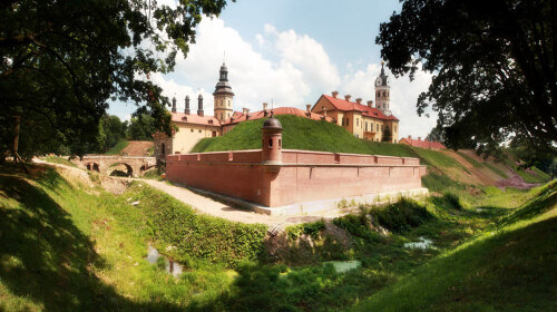 涅斯维日的拉济维乌家族城堡建筑群位于白罗斯中部,涅斯威日是一个小镇,小镇上有广场、教堂、市政厅等很多老建筑,城堡原是属于拉济维乌家族的,现在属于国家所有。包括寝宫、基督圣体教堂以及相应的环境景观,其中尤为典型的是带有十字架圆顶的基督圣体教堂。宫殿内有10座相连的建筑,形成了一个六边形的庭院建筑体系;城堡建筑群可以说在整个中部欧洲的古典建筑群中都独具风格。