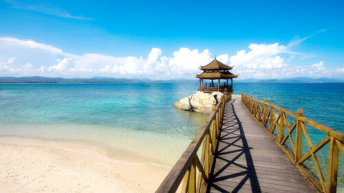 分界洲岛因形似么女静卧碧波又被人称作“美女岛”,隐隐的浮在碧波荡漾的海面上,宛若仙境。阳光下,海水有很多种颜色,蓝如宝石,绿若翡翠,能见度高达5-10米,能清楚的看到珊瑚礁和五彩缤纷的鱼,因此受到很多潜水爱好者的喜爱。岛上还有很多水上项目,不过价格偏高,适当选择。