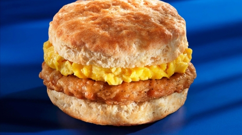 酷爱松饼的法国人,也把松饼加到了汉堡中。这款甜咸搭配的松饼堡中的奶油松饼不像英国的甜腻,香甜适中。夹在松饼与火腿之间的瑞士奶酪奶味浓重,在咸与甜之间平滑承接,出乎意料的好吃,真是早餐上选。