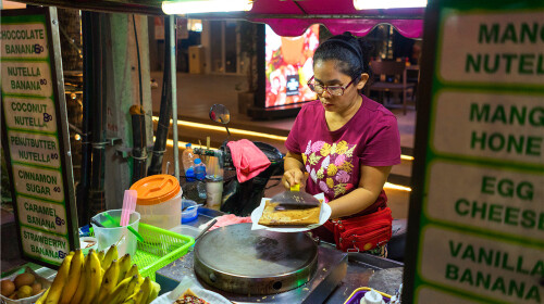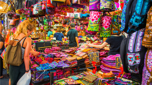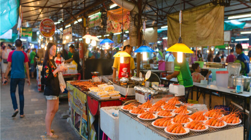 普吉岛周末市场位于普吉镇,这里一般都是在户外搭棚直接摆摊。夜市分为两个区域,一边是美食,另一边是购物,在这里商品种类繁多,规模很大,吃穿用什么都有,东西不贵,可以买些小首饰或是买套当地服饰穿着玩。