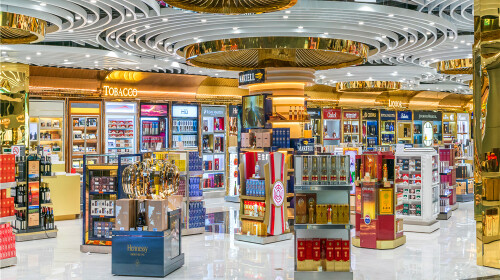 白色标签是免税商品,同时是需要在机场提货的商品,而蓝色标签是含税商品,蓝色标签的商品是必须要当场带走的,不能机场提货。