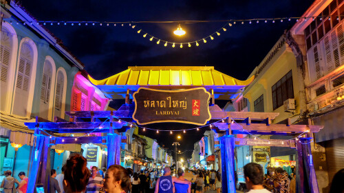 普吉步行街于2013年开业,这个礼拜市场也叫做 Lardyai ,坐落于修葺一新的泰朗路上、普吉镇中葡历史区的正中间。走在普吉步行街,你会发现很多泰国南部的特色美食以及当地的手工艺品和一些礼品货摊,步行街内除了咖啡馆、餐厅和酒吧之外,还坐落着许多售卖丝绸布料、传统药品、服饰和引动装备的店铺,鱿鱼、鸡肉和烧烤无疑是*受青睐,果汁、冰淇淋和咔侬也颇受欢迎,总的来说是泰式逛街的好去处。