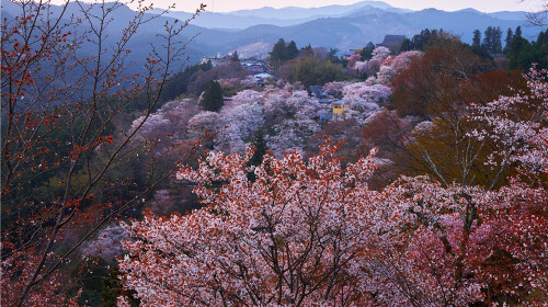 *赏樱时间:3月底4月初 吉野山被称为日本赏樱*名所。在这里你看可以看到万株樱花齐开放的盛况。青山绿树、漫山粉黛。很多人都说清晨山顶的花矢仓瞭望台让人充满了满满的幸福感,樱花怒放时连晨雾都带着粉红色。在粉色花海中追逐的奈良萌鹿,在樱花树下吃着便当赏花的当地人,都是那么悠然自得,让人羡慕。查看目的地攻略