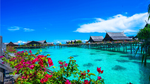 不仅马尔代有水屋,沙巴也有浪漫水屋哦,卡帕莱水屋距离距离仙本娜快艇50分钟,是东南亚*有名的水屋,海中仙境,岛上有五十一间别墅小屋,可以蜜月布置。散步就能看到海龟、魔鬼鱼这里还可以考潜水证哦!