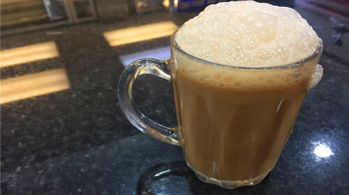主要成分是茶叶和炼乳,就是我们通常喝的奶茶,马来西亚人用两个杯子拉来拉去,拉得越长,起泡越多,味道就越好,成了马来西亚特色美食。