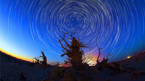 额济纳旗,你的*反应一定是金秋的胡杨林,但是如果你看过额济纳旗的星空,一定会永生铭记。当胡杨林撞上星空,黑夜不止“黑”这一种颜色。荒漠里的怪树林视野宽阔,几乎没有光污染,是拍摄星空的*,夜里的胡杨林铺成金色殿堂,仿佛想着戈壁和夜空诉说着当年的峥嵘岁月和千年的神秘故事,*能够治愈所有的“都市孤独”。 *地点:二道桥、 *时间:凌晨1点到凌晨5点(前半夜可能会有城市灯光)