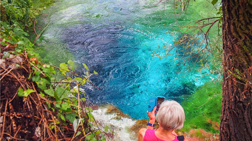 蓝眼睛泉位于萨兰达东北方向大约20公里的地方,景致宛如海上的迷你九寨沟,整个蓝眼睛全呈现出一种梦幻的蓝色,实质上是一个幽深的水下溶洞,清澈迷人的深蓝色从溶洞中不断往上涌,仿佛源源不竭一般。在蓝眼睛泉周围还种满了南欧紫荆花,花开时节,碧潭嫣红,真的就是海上九寨沟一般的美感。