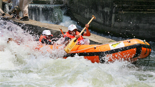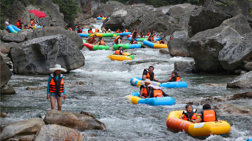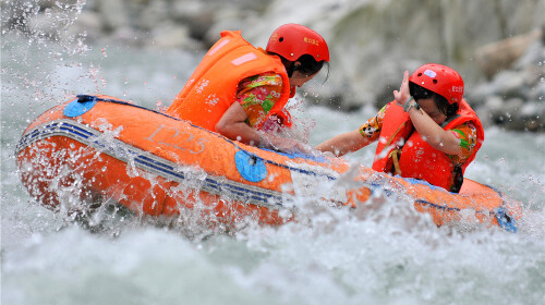 “中国漂流小镇、西部*漂” 都江堰虹口漂流当之无愧。漂流全长10公里,水流由缓而急,由急而陡,多处落差1米以上,让你在高山流水间感受漂流的乐趣。这里不得不说下漂流的水源,由来自海拔4000米以上的雪山之水和白沙河地下溪水融合而成,河水冰凉但不刺骨,不得不让人感叹没有浪花四溅的夏天不*。
