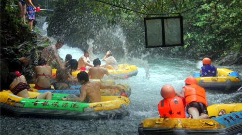 清远是中国漂流之乡,漂流界有句话“广东漂流看清远,清远漂流看古龙”,清远古龙峡漂流被称作“漂流之巅”和“落差之王”。高达千米的落差,坐着皮筏艇高速漂行,就像 “浪尖过山车”。古龙峡山清水秀,原始丛林遮天蔽日,热辣阳光不存在的。对怕晒黑的妹子们来说,古龙峡漂流还是一个不用涂防暑霜的漂流哦!