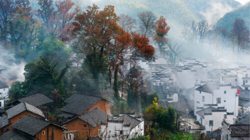 白霭中的村庄充满了徽派建筑的古朴之感,四周环绕的树木高高低低,绵绵的红叶给这幅静默的山水画添上了火热的色彩。隔着白雾远远望去,朦朦胧胧,似是而非,如同桃花源一般。 赏枫时间:11月中旬至12月上旬。查看目的地攻略