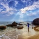 在三亚,要想拍到*的海景就一定要去亚龙湾。海南岛*南边的的这样一条半月形的海湾,就是号称“天下*湾”的亚龙湾。绵长细腻的沙滩,清澈见底的海水,与透净的蓝天、白云构成了无与伦比的取景框。这时,与妹子一起穿上长裙,在沙滩上尽情地凹起造型来吧。查看目的地攻略