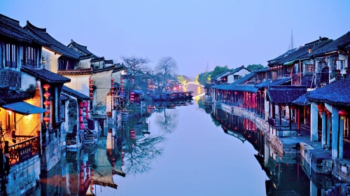 悠悠水乡,天涯过客。乌篷船,青石板,烟雨长廊,古色古香的江南景色配上周杰伦低沉磁性的嗓音,将各种含蓄的情感表达的丝丝入扣。夜幕降临,酒吧一条街热闹起来,成为一道新的风景线,你可以去小酌几杯,听听吉他弹唱,在这千年古镇中享受一切美好。