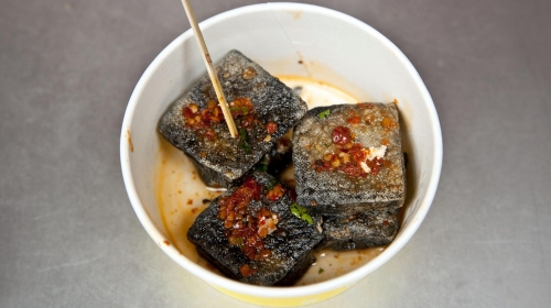 长沙的臭豆腐有别于南京的臭豆腐,虽然其貌不扬,但简单的豆腐配上简单的辣椒水却能给人不简单的味觉享受。店家很注重豆腐的品质和口感,表皮在熬制的豆油里炸得酥脆,老板将油炸膨胀的豆腐用筷子一个个戳破,向里灌上自制的汁水,香辣适口,淡淡的臭味混合鲜豆腐在高温油炸过后蛋白的清香再加上辣椒汁的香气简直是天作之合,让人忍不住一口接一口!在重口味的湖南菜里算是大众能接受的“轻”口味美食小吃了。喜欢吃臭豆腐的可千万