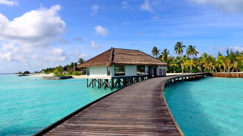 水上屋是马尔代夫海岛的特色建筑,晚上睡觉可以听到拍打的海浪声,透过屋子里玻璃地板,可以直接看到翻涌的湛蓝海水和色彩斑斓的热带鱼群。在屋内,打开窗户,就是大海,甚至如厕、沐浴,都是露天的。躺在躺椅或者吊床上,你可以从日出躺到日落,慵懒的享受这自然界的无上赏赐。