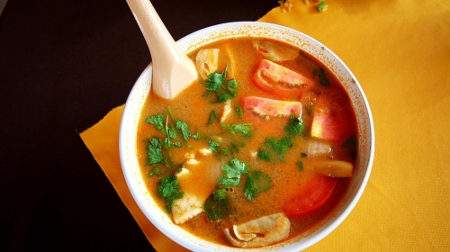 冬阴功这三个字其实是音译的,将泰语直译的话应该是酸辣虾汤,是一道大小餐馆、寻常人家都会常做的一道汤。这道汤将各种辛香料先煲出味道,再加入虾、鱼露、草菇、花奶、椰汁一起炖煮,激辣的味道配上咖喱的香气,又开胃又饱足,可以说是当之不愧的泰国美食代表。
