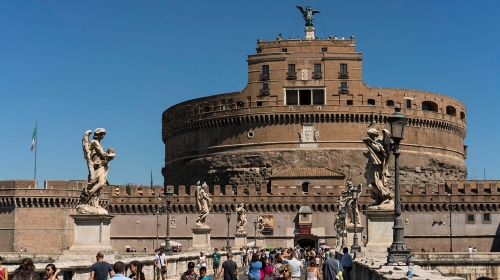 城堡曾是哈德良皇帝修建的陵墓。公元6世纪起便被改建成堡垒、监狱和教会所在地。城堡造型伟岸坚固,仿佛任何力量都无法将它摧毁。但事实上在近二千年的岁月中它经历了多次破坏和修复,已经不复它初建的模样。塔顶的青铜天使雕像用以纪念传说中罗马黑死病终结前出现的天使,也是圣天使堡名称的由来。城堡上层富丽堂皇的保罗丽娜展厅内装饰有精美的壁画和艺术品,光荣院里辉煌的礼拜堂是米开朗基罗设计的,十分值得一看。但*的乐查看目的地攻略