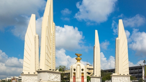 政治文明从来都是一个民族历史进程的重要组成,无数的仁人志士振臂高呼,在某个动荡压迫的年代发出争议的声音。民主纪念碑是曼谷标志性建筑物,是为了纪念1932年6月24日发生的民主政变而建立的,这次政变推翻君主制建立民主制。堡垒式建筑呈六面体,每一面都装饰着一柄宝剑,象征民党的六项政变纲领,顶端盘上托着一本宪法,说明宪法高于一切。如今是许多街头游行和集会的聚集地。查看目的地攻略