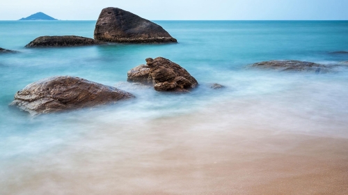 位于海南万宁市的石梅湾与北方的海湾相比少了冷冽的静寂和冷清的氛围,这里四季常青,到处都是枝繁叶茂的椰林和它留下的阴凉倩影,彰显着活力和勃勃生机。石梅湾的日出非常迷人,在太阳跳出海面之时,墨绿色的海水被照射成金黄的色彩,雾气霞光,海天相接,非常漂亮。如此温馨浪漫的美景,真是震撼人心。查看目的地攻略