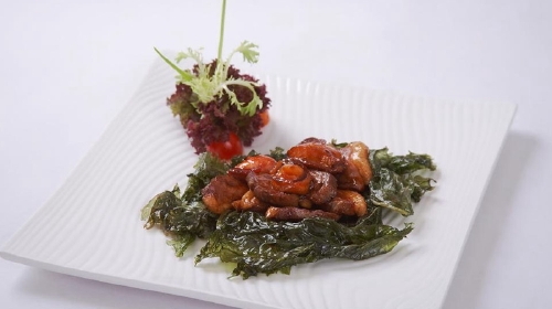 海葡萄是冲绳地区特有的海藻,因外观与葡萄相似而得名。海葡萄长得很魔性,初看有点不忍下口,但因为营养价值高也被封为“绿鱼子酱”。海葡萄的味道也很特别,初尝咸咸黏黏的,咬起来还会发出噗嗞的声音,实在是太美妙!