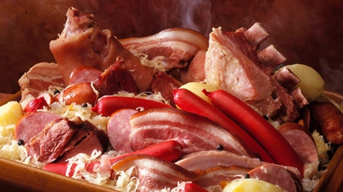 德国酸菜不算是一道主菜,常常被用来搭配香肠或是猪脚,很受德国人的喜爱。酸菜的常见原料是圆白菜和大头菜,多年的腌制经验加上上好的蔬菜使得德国酸菜的味道几百年来始终如一。可口的酸菜和肉食搭配在一起,可以大大降低油腻感,还能为身体提供适量的维生素,真是一举两得~