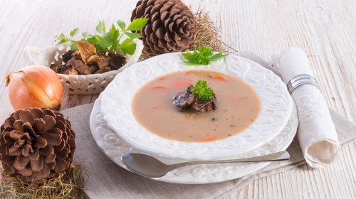 俄式奶油蘑菇汤并不拘泥于材料,只要你想得到,都可以制作一下,像是培根、鸡茸、木耳、芦笋、土豆甚至是芝士等等食材,都能够做出非常棒的奶油蘑菇汤。在品尝这道汤的同时可以配着一些蒜香面包一起蘸着吃,被切得碎碎的蘑菇吃起来有种Q弹的口感,面包绵软、汤汁浓厚,*是很棒的享受!