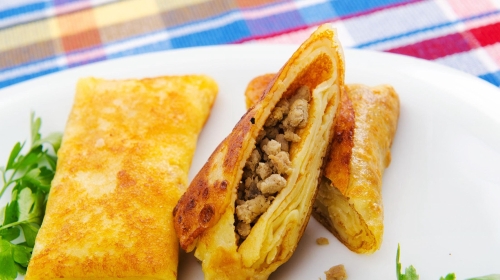 要说什么美食在沈阳回头率颇高,那必须是沈阳的回头。回头在沈阳历史悠久,堪称沈阳的老味道,如果来到沈阳没吃过沈阳的回头,小编只能说你的旅程一定不完整。回头这名字从字面上看,根本看不出是什么东东,让你摸不着头脑。其实回头类似卷饼状,金黄酥脆的外皮,看上去颇有食欲。吃上一个刚出锅的回头,那劲道的面皮和饱含汤汁的牛肉馅,简直是人间美味!在寒冷的冬日,再搭配一碗沈阳地道的羊杂汤,从头暖到脚!