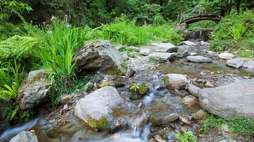 十八涡的存在可以说是造物主的妙手打造的。十八涡两侧危崖险峻,汹涌的水流随着陡然降低的地势冲击而下,与崖底亲密接触,飞溅的水花肆意流淌,长年累月之后形成了十八个大小不一的险涡深潭,故而名为十八涡。这深深浅浅的水潭映着两旁的青山,浅浅的绿色晶莹剔透,阳光下显得波光粼粼,非常动人。查看目的地攻略