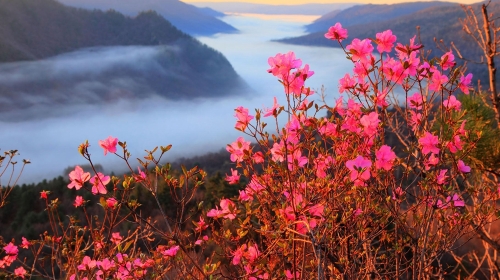 高姥山*的特色,莫过于漫山遍野的红杜鹃了吧!在杜鹃花开的时节到来,会发现几乎整座山都被染上了火红的色泽。数以万计的杜鹃争奇斗艳,满眼的红色娇艳多姿,与间或漏出的绿色相互映衬,煞是好看。撇去杜鹃不谈,高姥山的云海日出,白雪雾凇,高山湖泊等景观也都值得一看的。查看目的地攻略